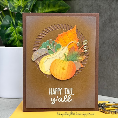 I'm back today with a few more cards using my new dies gifted to me by Spellbinders. These cards feature products from the Autumn Wonder release as well as a new set of frame dies.